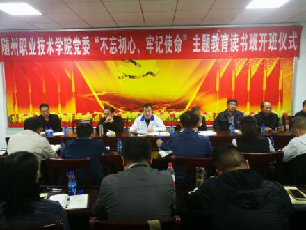 在讲到举办读书班时,李德荣书记明确提出了四点要求他指出:举办主题教育党委读书班是贯彻落实习近平新时代中国特色社会主义思想的重要载体,是开展好我校主题教育的重要基础,是实现“随职梦三步走”良性发展的迫切需要。党委领导班子成员是重点教育对象,在政治上一定要站得高,在思想上一定要认得深,以身作则、以上率下,高起点、高质量、高标准开展好读书班活动,充分发挥好头雁效应。一要通过开展好集中学习和专题研讨,进一步加深对习近平新时代中国特色社会主义思想的理解,提高运用党的创新理论指导实践、推动工作的能力,不断增强“四个意识”、坚定“四个自信”、坚决做到“两个维护”,不断提升为党育人、为国育才水平。二要通过这次学习,更加坚定对中国特色社会主义的政治认同、思想认同和情感认同,更加筑牢信仰之基、补足精神之钙、把稳思想之舵,争做坚守理想信念的表率。三要通过这次学习,进一步坚持以人民为中心的发展思想,坚持问题导向,紧扣各项工作的瓶颈短板和薄弱环节,紧扣学院发展最需要解决的现实问题,拿出实招硬招,逐项攻坚突破,厚植师生情怀,筑牢公仆意识,争做树牢宗旨意识的表率。四要通过这次学习,始终坚持全面从严治党永远在路上,认真贯彻新时代党的建设总要求,更加强化党要管党治党的主体责任,更加强化刀刃向内的勇气,更加强化敢于斗争的精神,着力增强自我净化、自我完善、自我革新、自我提高的能力,争做全面从严治党的表 率。读书班采取个人自学、集中学习、研讨交流等形式开展,党委班子成员要原原本本的学、集中研学、联系实际学、学以致用,心无旁骛的学习和思考,确保学深悟透、融会贯通、真信笃行。