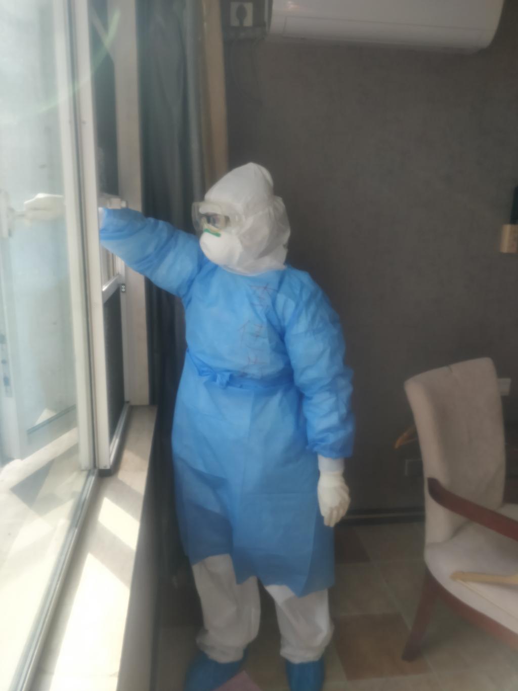 隔离点中的病人,每天都有转院和入院的,转走后的病房要及时进行酒精消毒、紫外线消毒,接病人一天当中,可能随时都会有病人来,晚上也是一样。有的一家人中只有一个人隔离,有些病人已经入院很多天依然没有好转的,院方就会要求其家人一起隔离,很多患者非常着急、担心,同时也不理解,工作需要很多的耐心。