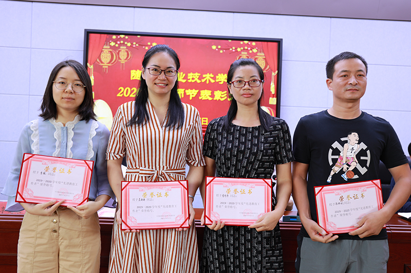 会上,党委委员、副院长梁学军同志宣读表彰文件,授予肖强等8名同志“优秀教师”称号、授予姜娥等2名同志“优秀班主任”称号、授予张欢等16名同志“先进教育工作者”称号。院领导向受表彰的先进个人颁发获奖证书,受表彰的教师代表刘晶晶、吴冉冉先后上台发言。