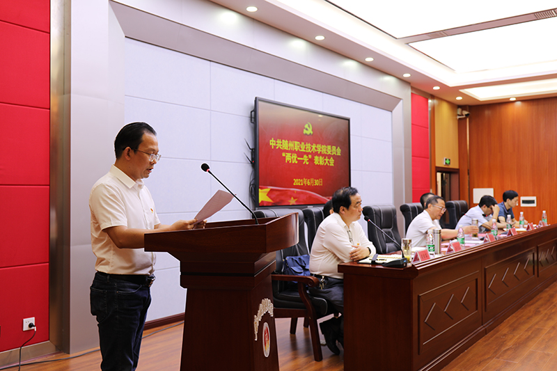 6月30日,我校隆重举行“两优一先”表彰大会。校党委书记李德荣、院长马大奎,校领导李高东、童加斌、梁学军、邹厚亏以及全体党员师生参加了大会。会议由党委副书记、院长马大奎主持。