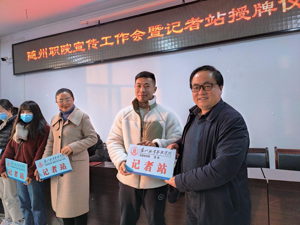 会上,肖新俊对新闻宣传有关工作流程进行了解读,并宣布党委宣传部与几个二级学院等11个单位共建记者站。梁学军现场为记者站负责人授牌并合影留念。