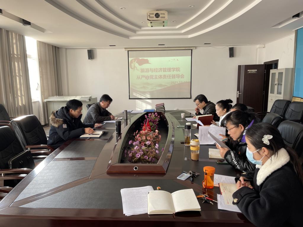 12月22日,学校党委委员、副校长邹厚亏一行到旅游与经济管理学院开展落实全面从严治党主体责任调研,经管学院党总支成员、支部委员等参加会议。