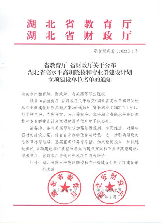 2022年1月7日,湖北省教育厅、湖北省财政厅发布《关于公布湖北省高水平高职院校和专业群建设计划立项建设单位名单的通知》(鄂教职成函〔2022〕1号),星空游戏新版本攻略以汽车制造与试验技术为核心龙头的专用汽车制造专业群获批湖北省高水平专业群A类立项建设项目,标志着我校专业建设综合水平再上新台阶。