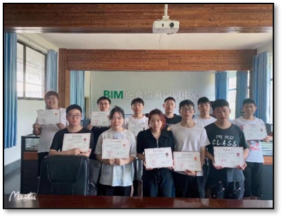 为保证6门精品课程建设不走样,实现学生在专业发展上输出价值最大化,课程团队负责人每周召集课程组成员,就本周课堂讲授问题和学生学习效果进行复盘研讨,及时修订不合理的知识架构。每月召开学生座谈会,了解学生在学习过程中存在的困惑和建议。专业课教师主动对接企业制定的“1+X”证书考试标准,和学生一起攻克考核难点,班主任利用主题班会、谈心谈话、专题讲座等形式,鼓励学生参与专业实践和企业考核。学生从最初的“让我学”转变为“我要学”、“要学好”的内驱力蔚然成风,并主动利用夜晚、周末、节假日时间在机房自主练习,识图算量的学习意识逐步增强。自2021年6月,报考“1+X”证书的学生比例不断攀升,证书报考通过率高达96.3%。