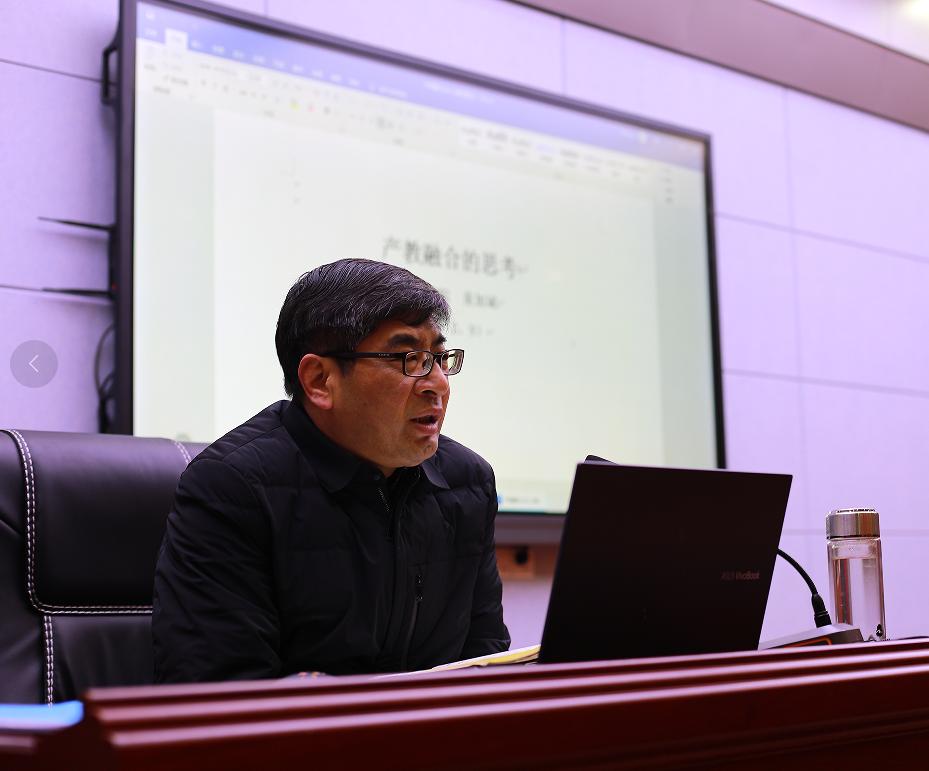 校党委委员、副校长童加斌以《随州职院产教融合的思考》为题向全校教师作了详细的报告。童加斌首先对“产教融合、校企合作、工学结合”是职业教育最基本最明显的特征,是职业教育最基本教学体系构架进行了深入细致的剖析。紧接着,童加斌从专业汽车产业、农产品加工产业、文化旅游产业、电子信息产业等15个方面对随州市支柱和优势产业进行了逐一介绍,并勾画出随州主导产业布局现状,提出学校融入随州、扎根随州、服务随州,就是融入随州产业、扎根随州产业、服务随州产业。童加斌要求全体教师积极深入地思考我校产教融合新途经、新方法,紧密对接融合随州重点产业,科学开设专业和课程,提高人才培养质量,推动学校职业教育健康发展,促进地方经济繁荣发展。