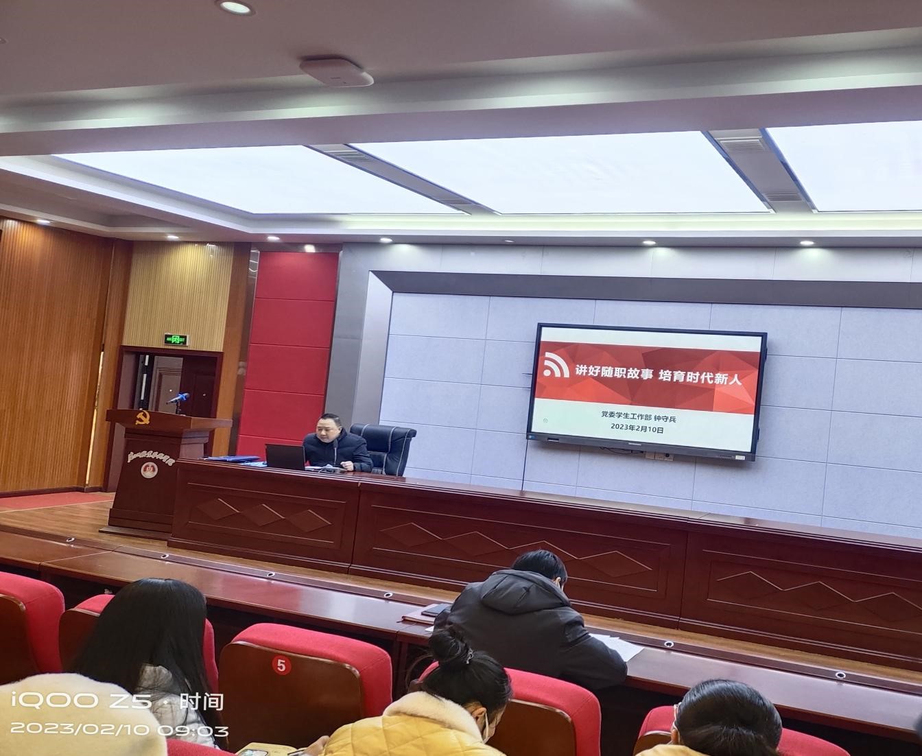 为进一步提高辅导员职业技能和工作水平,推动辅导员职业化、专业化发展,做好春季学期学生教育管理工作,2月10日上午,我校在学术报告厅召开2023年春季学生工作培训会。校党委委员、副校长邹厚亏出席会议并讲话。学工处、保卫处、合作办学处、团委、中专部全体人员及各二级学院党总支书记、院长、副书记、学工办人员及全体专兼职辅导员参加会议。