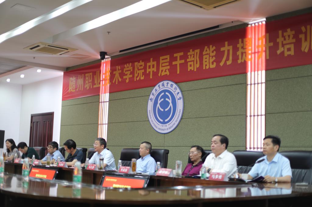 为深入学习习近平新时代中国特色社会主义思想和党的二十大精神,贯彻落实习近平总书记关于职业教育和高等教育的重要指示,更好更快推动学校事业高质量发展,8月14日上午,我校2023年中层干部能力提升培训班在南京工业职业技术大学开班。南京工业职业技术大学党委常委、副校长朱建国一行莅临指导,学校党委班子全体成员及全体中层干部参加开班仪式。