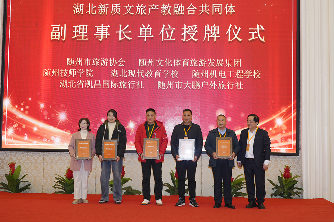 会议审议并通过了《湖北新质文旅产教融合共同体章程》及首届理事会成员名单。举行了简约而庄重的共同体启动仪式,为3家理事长单位、13家副理事长单位授牌,为武汉轻工大学管理学院副院长黄猛教授、随州市政协副秘书长刘荣博士、随州编钟之声报社总编辑周波等客座教授颁发聘书。