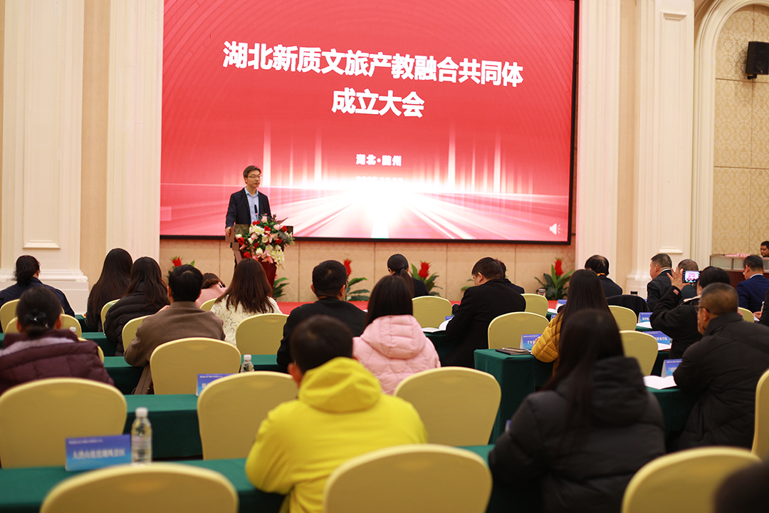 12月12日上午,由武汉轻工大学、炎帝文化旅游区、星空游戏新版本攻略联合牵头的湖北新质文旅产教融合共同体成立大会在随州举行。来自随州市文化和旅游局、随州市旅游协会、长江工程职业技术学院、黄冈职业技术学院、武汉城市职业学院、湖北科技职业学院、湖北艺术职业学院、随州技师学院、湖北现代教育学校、随州机电工程学校、随州文化体育旅游发展集团、随州市大鹏户外旅行社、湖北省凯昌国际旅行社等省内50余家行政主管部门、院校、企业、行业协会代表齐聚一堂,共同见证这一推动湖北文旅教育与产业深度协同的高光时刻。大会由星空游戏新版本攻略文化旅游产业学院院长曾建平主持。