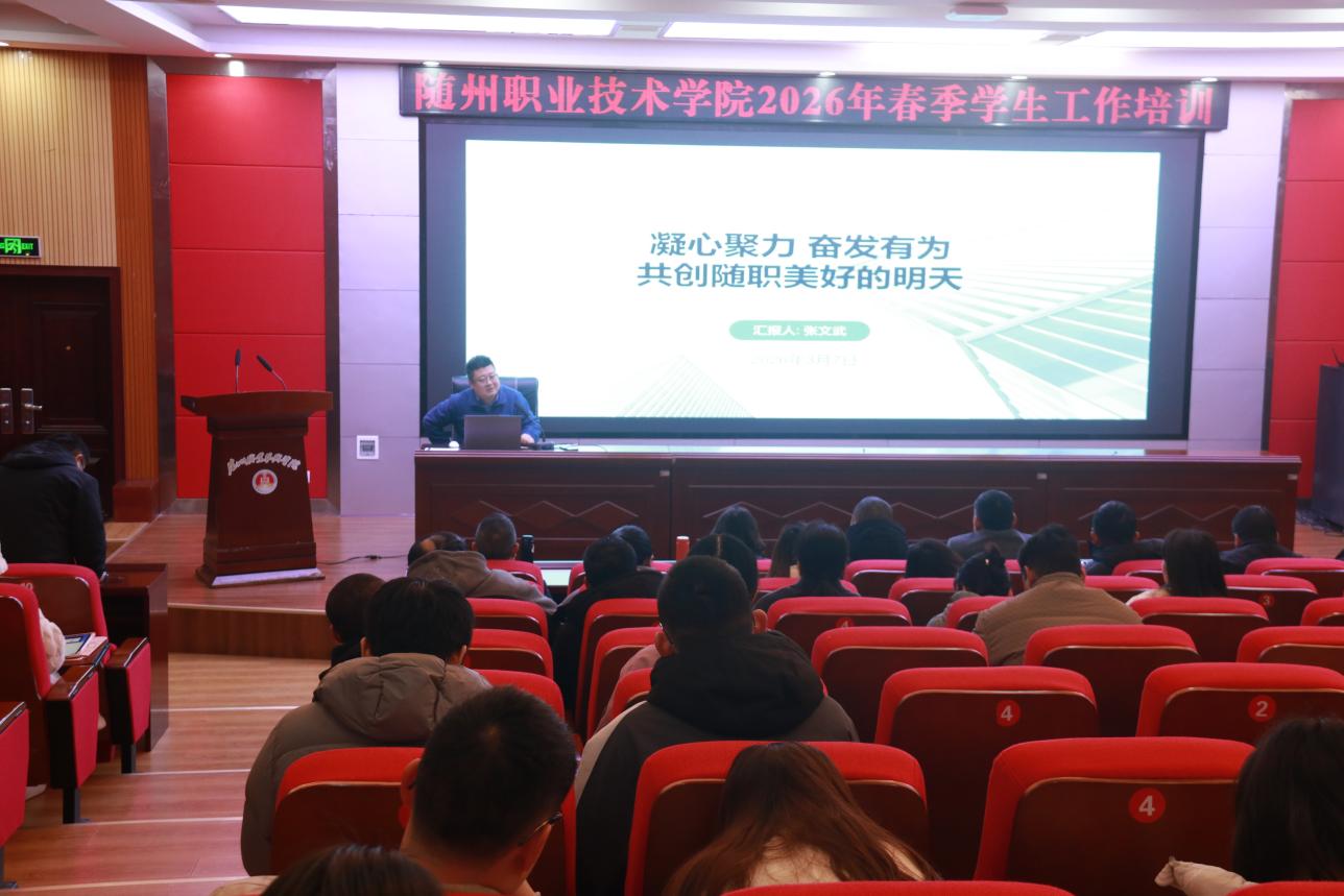 为全面提升学生工作队伍的专业素养与业务能力,推动学生工作高质量发展,3月7日上午,我校在学术报告厅召开2026年春季学生工作培训会。学生工作处、团委、保卫处全体工作人员及全体专兼职辅导员参加会议。