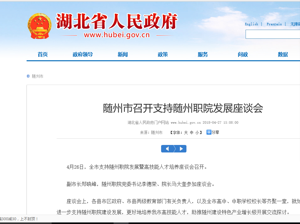 湖北省人民政府网:随州市召开支持随州职院发展座谈会