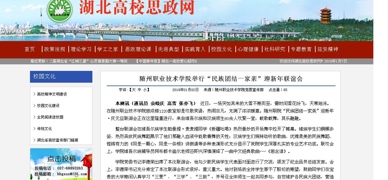 湖北高校思政网:随州职业技术学院举行“民族一家亲”新年联谊会
