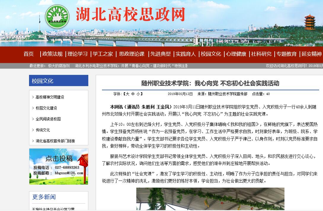 湖北高校思政网:随州职业技术学院 我心向党 不忘初心社会实践活动