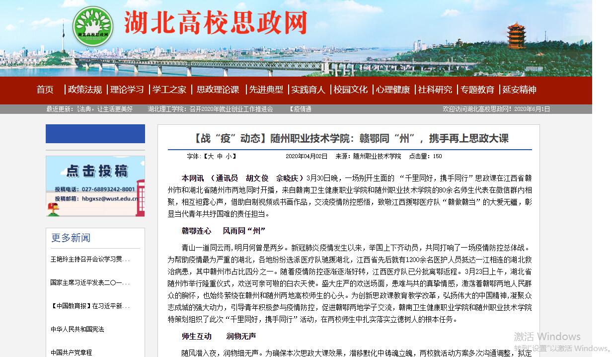 下一条:湖北高校思政网:护理专业校友、学生在祖国各地助力抗疫