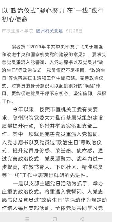 随州机关党建:以“政治仪式”凝心聚力 在“一线”践行初心使命