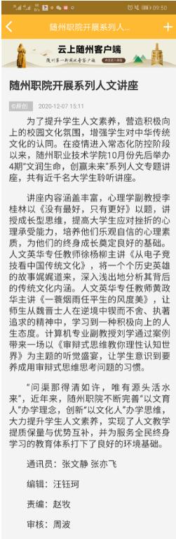 上一条:编钟之声报:随州职院开展系列人文讲座以文育人