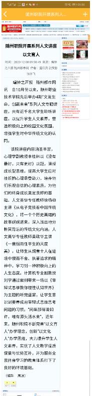 编钟之声报:随州职院开展系列人文讲座以文育人