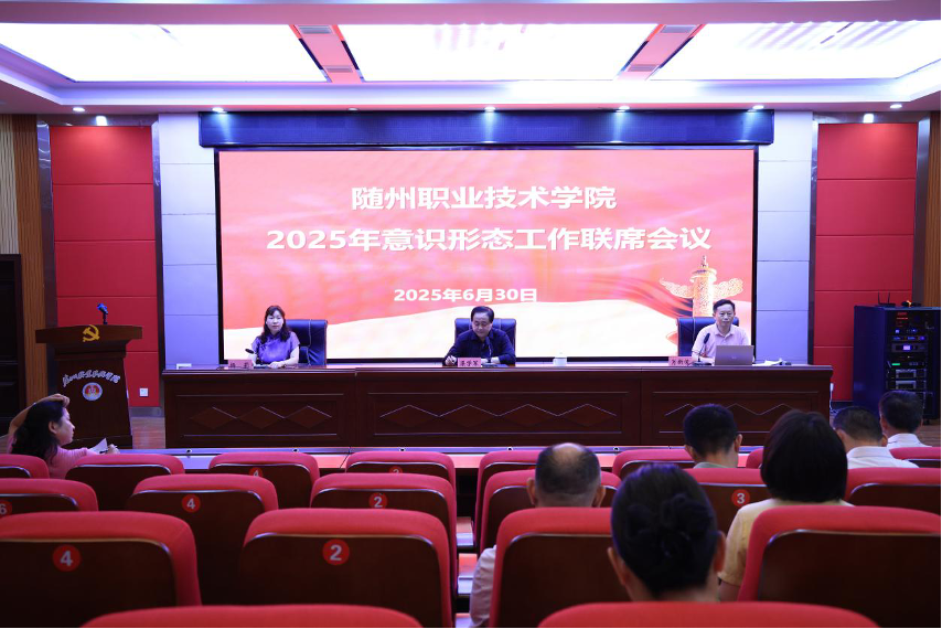 梁学军在讲话中指出,意识形态工作是我们高校工作中一项极端重要的任务,关乎学校的办学方向、师生的思想稳定和校园的和谐发展。各单位要聚焦政治引领,筑牢思想根基。坚持社会主义办学方向,深入学习贯彻习近平新时代中国特色社会主义思想,持续推进党的创新理论“进教材、进课堂、进头脑”,将党的二十大精神、习近平总书记关于教育的重要论述融入思政课程和课程思政建设。要聚焦责任落实,完善工作机制。构建“党委统一领导、党政齐抓共管、部门协同联动、全员共同参与”的大格局,压实党总支书记“第一责任人”职责,将意识形态工作纳入年度考核;加强敏感节点风险排查,做到早发现、早预警、早处置。要聚焦阵地建设,守牢安全防线。加强学校官网、微信公众号、短视频平台的内容审核,健全“网络评论员”队伍建设,主动发声引导舆论,坚决抵制错误言论;规范学术活动审批流程,落实“一会一报”制度,确保学术研究与党的方针政策同频共振。要聚焦协同联动,凝聚育人合力。推动思政课程与课程思政同向同行,宣传、学工、团委、马院等部门协同开展社会实践和校园文化活动;加强师生思想动态研判,及时掌握师生关切,针对性开展思想疏导和心理干预;构建“校地联动、资源共享”的意识形态工作网络,主动拓宽主流媒体宣传矩阵,讲好随职故事,提升学校社会影响力和美誉度。